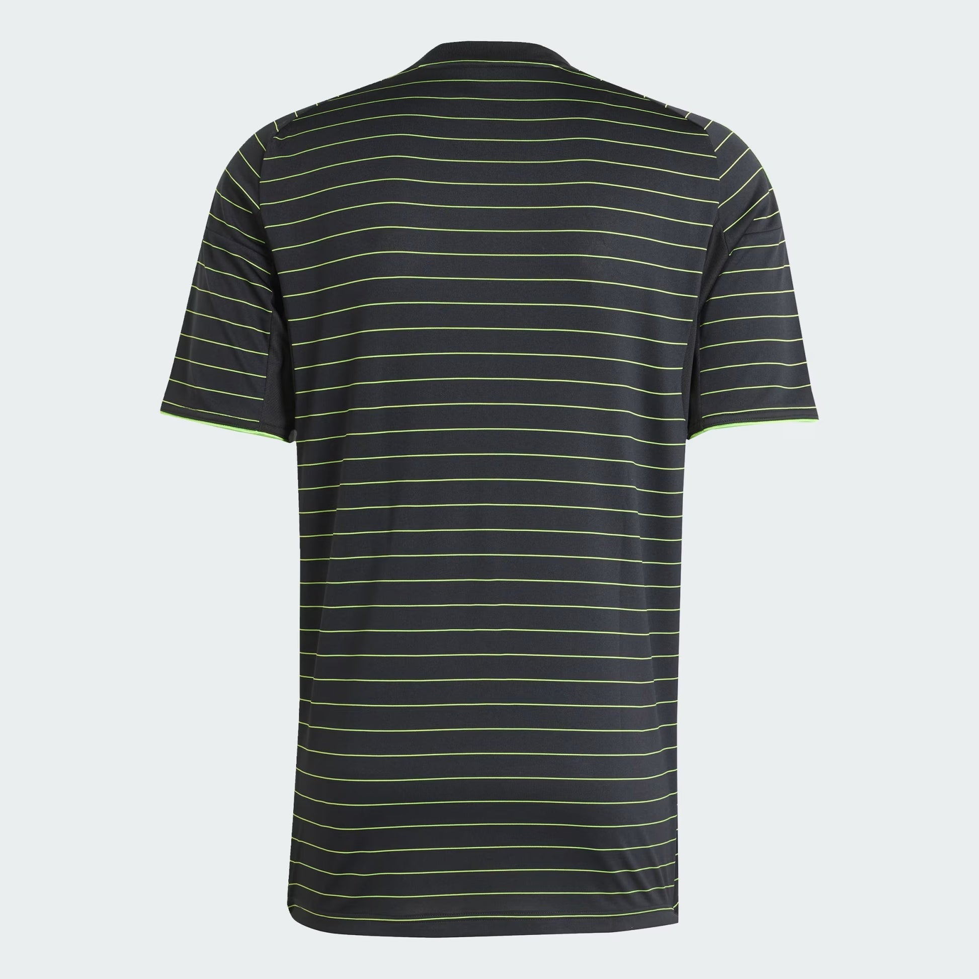 Inspired by Celtic FC's bumblebee kit from the 1990s, this adidas away jersey adds its own twist. Interspersed with engineered horizontal pinstripes etched in neon green, the black base helps to create an elegant, modern interpretation of a classic club look. Behind the buzz, moisture-managing AEROREADY keeps you dry on and off the soccer pitch.