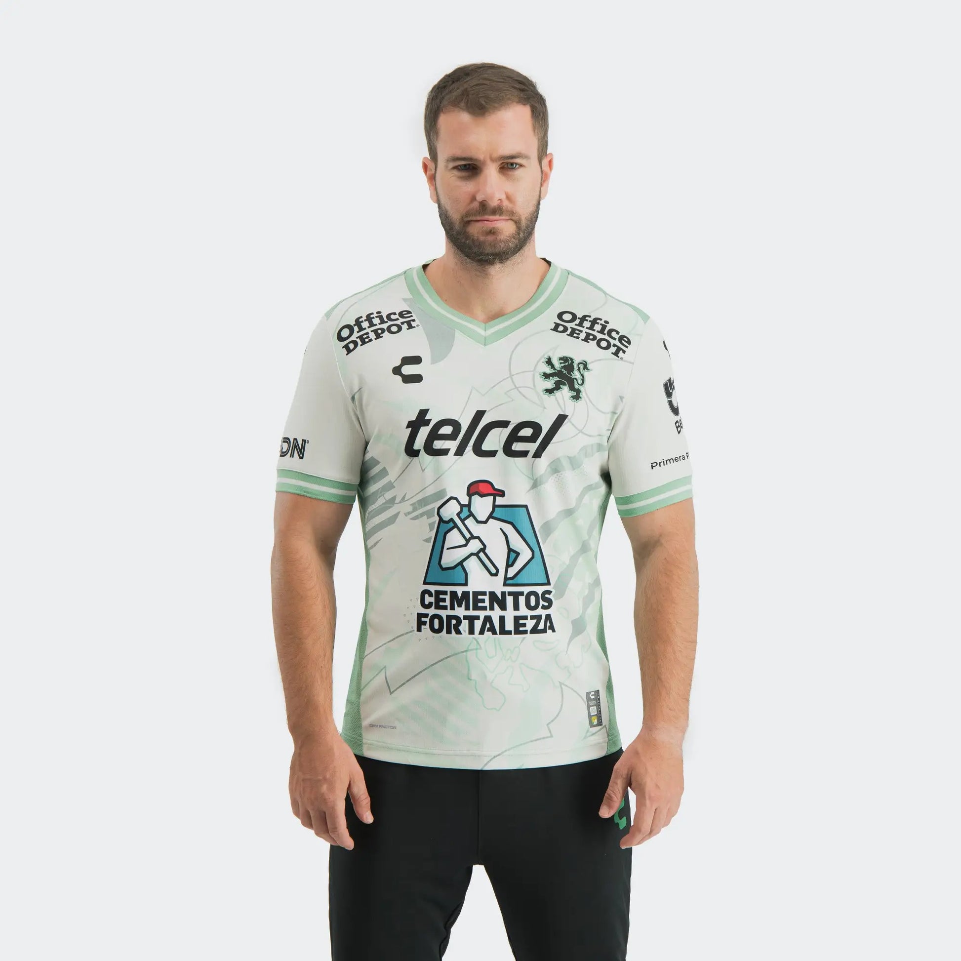 Take your passion for the Esmeraldas everywhere with the León Away Jersey for Men 25-26, a unique piece that pays homage to the club's fierce spirit and connection to the lion as a symbol of power. This innovative design in light green tones incorporates paws, claws and elements inspired by the lion's natural habitat, fusing identity, strength and style in one garment. It features a V-neck and classic ribbed sleeves in green with a gray stripe, details that add a sporty and elegant finish. The team's crest stands out for its exclusive design, featuring an extraction of the lion from the coat of arms, made of woven silicone, which provides texture, durability and a distinctive touch that a true fan will appreciate. It is made of 100% soft touch polyester, ideal for prolonged use thanks to its resistance and comfort provided by its regular fit. In addition, it includes mesh panels on the shoulders and sides, along with textured fabric, which together improve breathability, keeping you cool in every workout or intense day. It incorporates DRY FACTOR technology, which will keep you dry for longer, ensuring extra freshness thanks to its specialized moisture transfer fabrics. UV Block technology offers protection against ultraviolet rays, ideal for training or outdoor matches, while Nano Guard fights bacteria that cause unexpected odors, ensuring freshness for longer. The León Away Jersey for Men 25-26 is the perfect choice for those who live soccer with their heart.