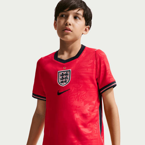 Nike presents: England's 2026 Away jersey. One England. One family. This Three Lions uniform features a knit pattern celebrating the diverse cultures and people that make up their country.