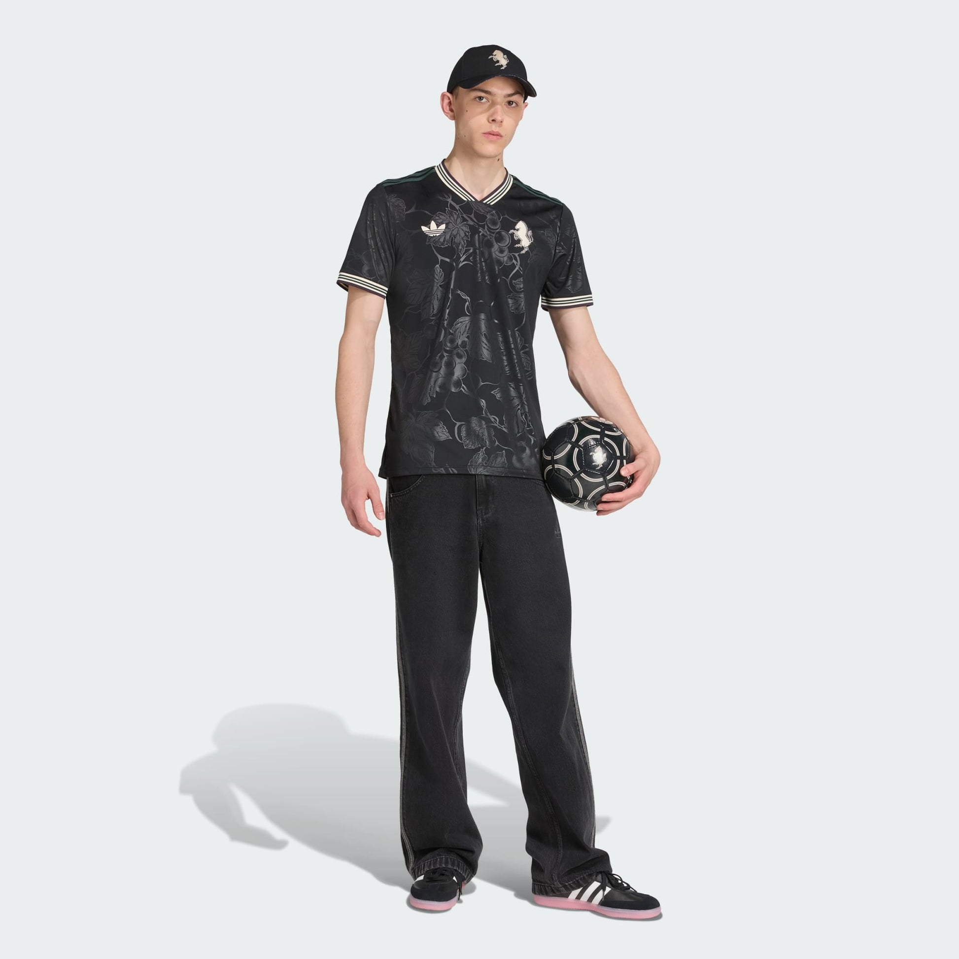 Raise a glass to your soccer heroes in a Juventus jersey that pays tribute to Piedmont's wine-making tradition. Standing out from black colors, an embroidered adidas Trefoil and classic club badge join subtle, vineyard-inspired graphics to produce an understated, elegant look. Created to keep fans comfortable and relaxed, this shirt features soft fabric and moisture-managing AEROREADY.
