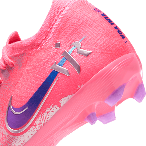 When you’re on the field, you want to be noticed—just like Vini Jr. Inspired by the flair he brings to every match, these eye-catching cleats are made with bouncy Air Zoom cushioning and a wave-like traction pattern to ensure they're the last thing defenders see as you blow past.