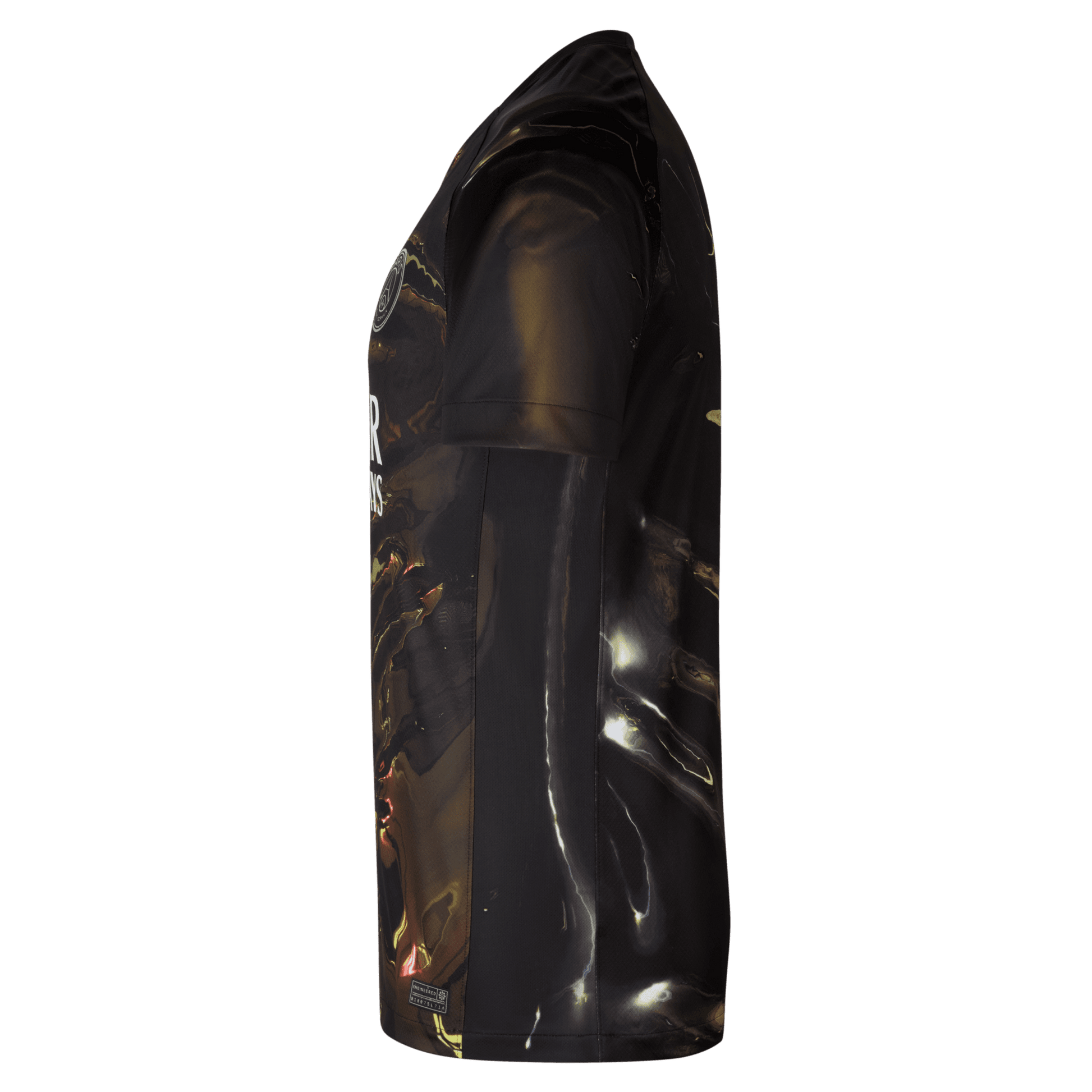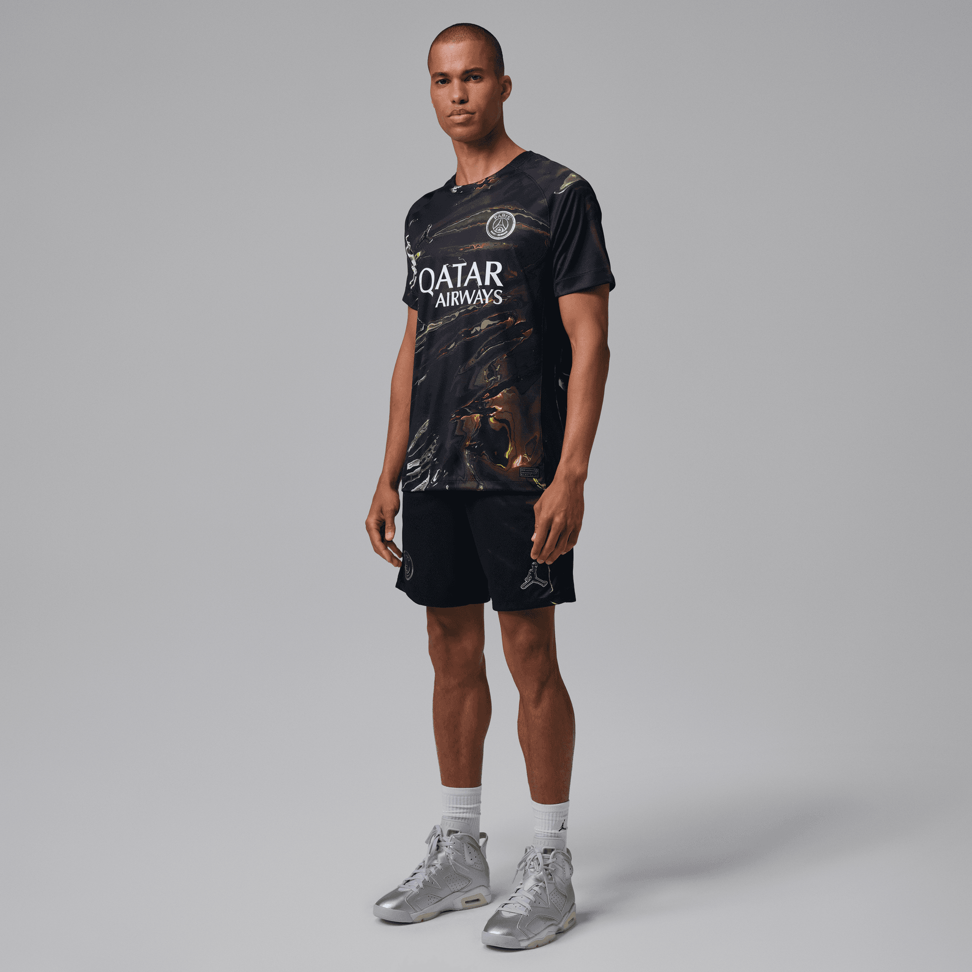 This special “Night Edition” jersey honors Jordan and PSG’s innovative history with a futuristic design inspired by Paris at night. The print shows the City of Light reflected in chrome, with fluid graphics that celebrate how this partnership is, once again, moving the sport forward.